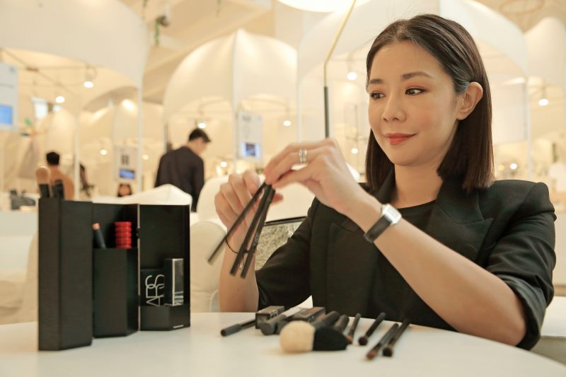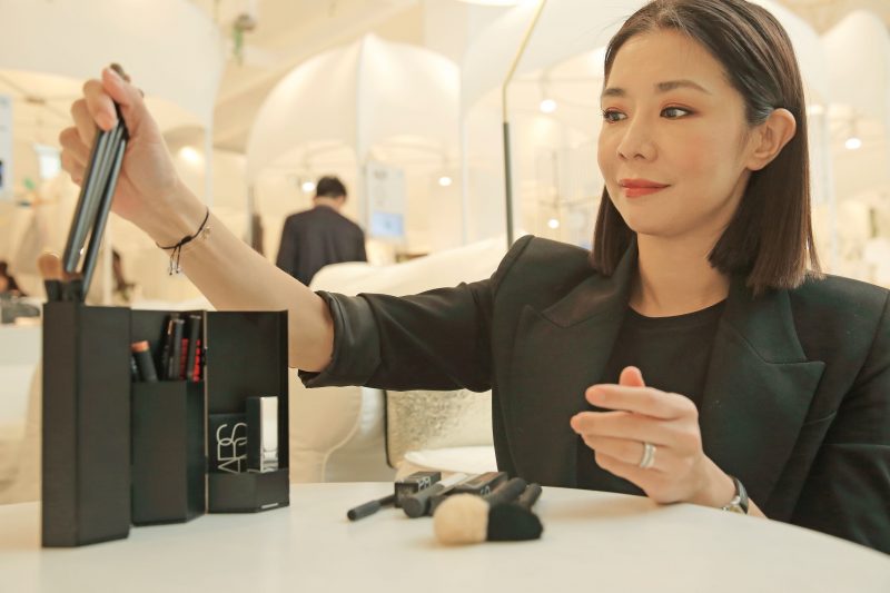 「多寶閣」的意象很符合我在專業上的運用,我特別中意墨香閣的霧黑設計,對彩妝師來說,這是專業的代表。工作中,當我將收納工具的墨香閣展開,像是在展示自己的專業故事。設計感十足的揭示畫面總能引起眾人的注目,也讓大家透過我的陳設立即了解在接下來的過程中將會需要使用的工具及妝品與可能步驟,在開始正式上妝前便先上演一場視覺互動。