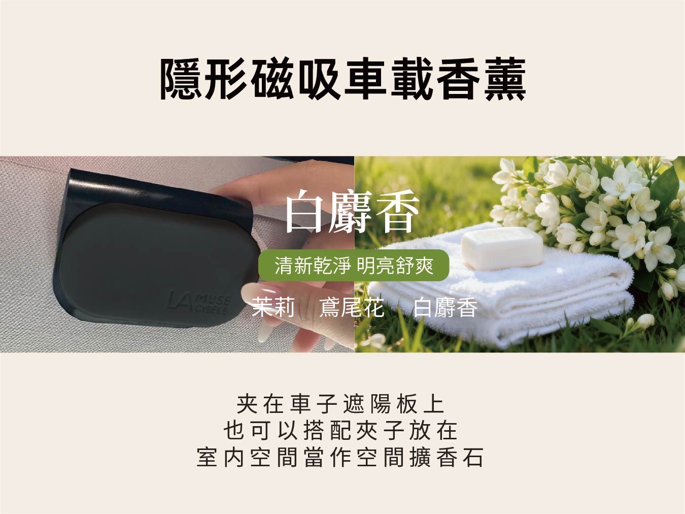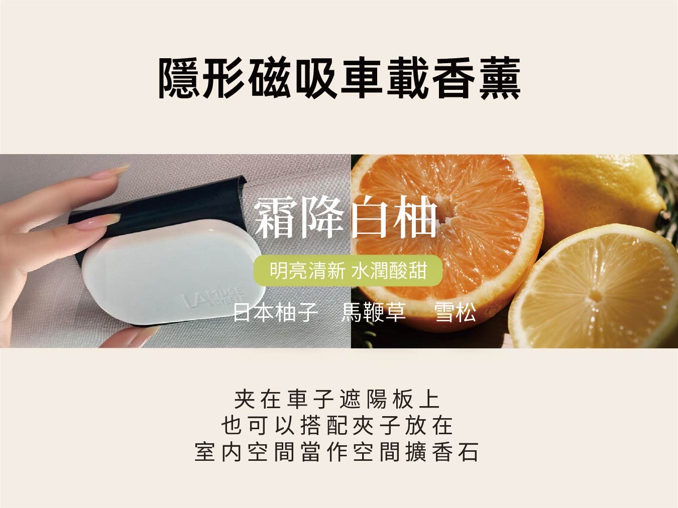 主推產品【LMC隱形磁吸車載香氛——霜降白柚】特色及推薦原因