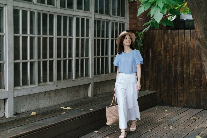 也因為總是不知道每天會被抓去什麼樣的空間「長見聞」,因此對每日的服裝機能性要求很高。這樣的機能性當然不是指專業的登山裝或是筆挺、制服式的套裝!我最喜歡的是棉麻材質的上衣、俐落簡單的褲裝或裙裝,這樣的穿搭可以讓我自在出席記者會、進行採訪,也能趕場去跟朋友在下午時來一場咖啡約會。同時,若是臨時起意要到工地探險,也不會過於綁手綁腳舉步艱辛。另外,也因為台灣濕熱的夏季讓人苦不堪言,我總喜愛戴上一頂草帽,除了防曬也讓整體造型看起來更有夏天的味道。