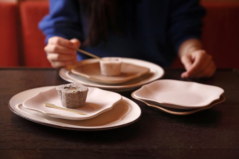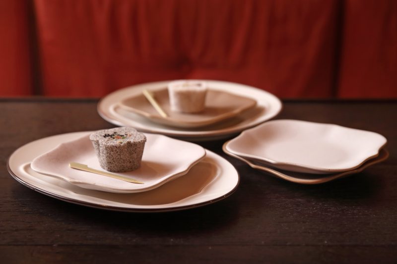 我們的糕點是有溫度的中式點心,不同於西式點心,往往需要加熱後品嚐。對於呈現溫度感這件事,我們找了很多不同的器皿擺盤搭配,最後,選擇了厝內的老磁磚系列。厝內的盤子很有趣,老磁磚系列復刻了古早的窗花元素,將窗花運用在盤子的作法讓整體造型簡潔而富韻味,擁有美感。