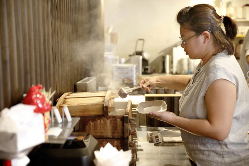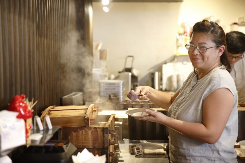 一開始規劃合興這個品牌其實並沒有準備內用區域,只有對外的零售檯和面外的開放式廚房,增加內用區後,我們開始思考如何透過內用體驗將糕點更完整的呈現給客人。