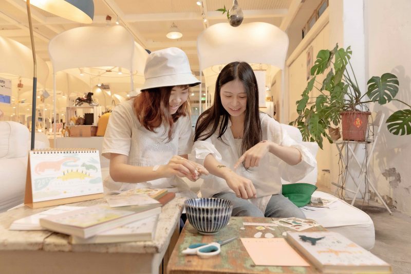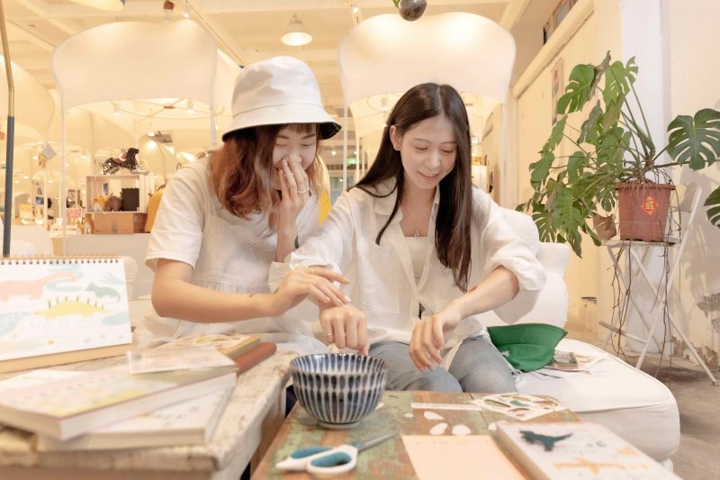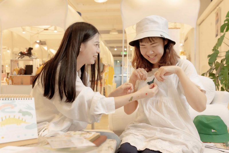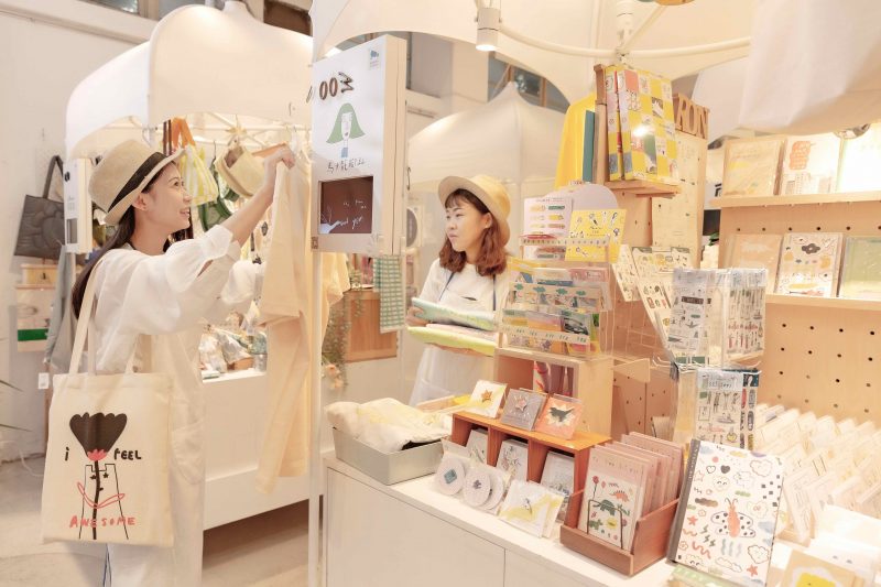 當班期間我會先觀察客人的需求,常發現人們在馬卡龍的攤車前都會被明信片吸引,四格故事的形式內容親人且療癒心靈,翻閱明信片就像閱讀書籍,看似簡單輕鬆卻蘊含著無比溫暖的同理心,透過插畫及簡短文字便帶給大家滿滿的能量與希望,因此我希望能將這打動人心的台灣設計師品牌分享給更多人認識。