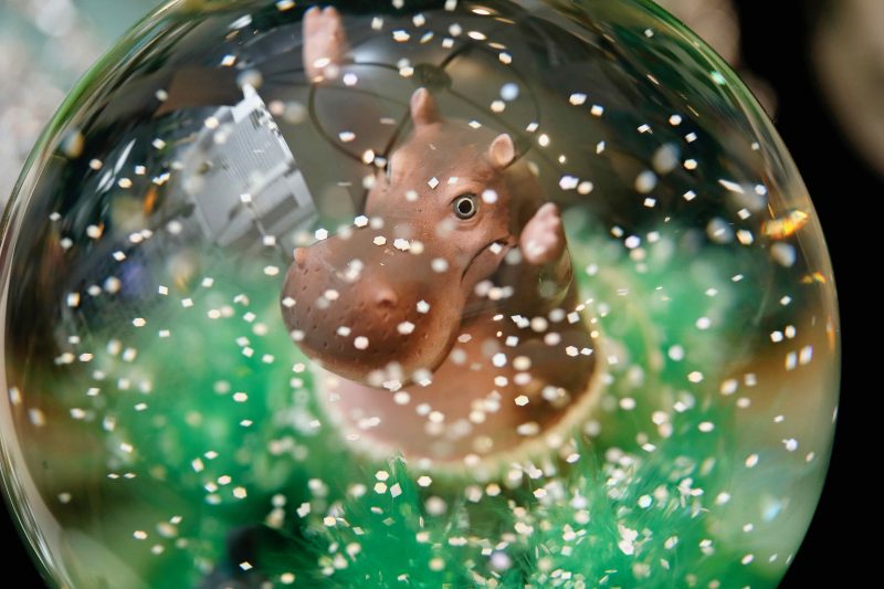 河馬的姿態、膚色、眼神,以及草料與芭蕾舞裙的材質與底座仿實木的製作是設計過程中不斷修正調整的重點,最終落實成為精緻而有趣生動的桌上風景。