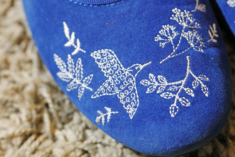 「walking to the wonderland」是以鞋子作為發想的一個系列,將童話故事、大自然的風景以及心中的想像,藉由插畫轉換成刺繡表現在鞋面上,希望這款刺繡鞋能為您的足尖增添不同的表情,感受更多的愉悅!