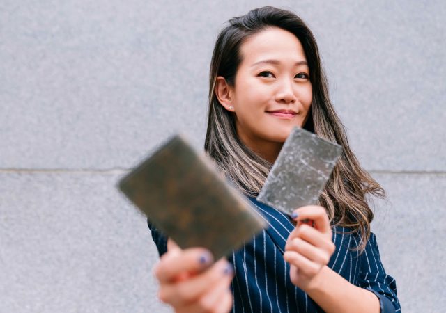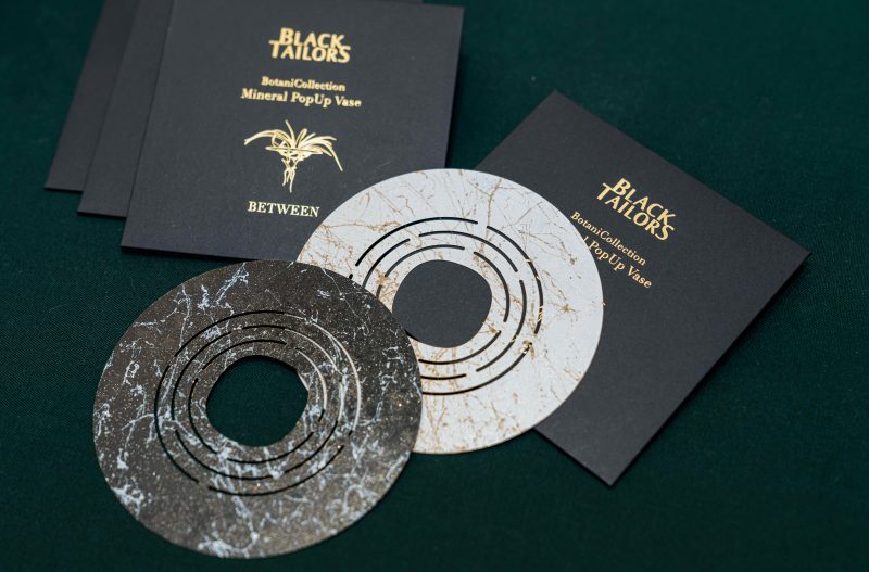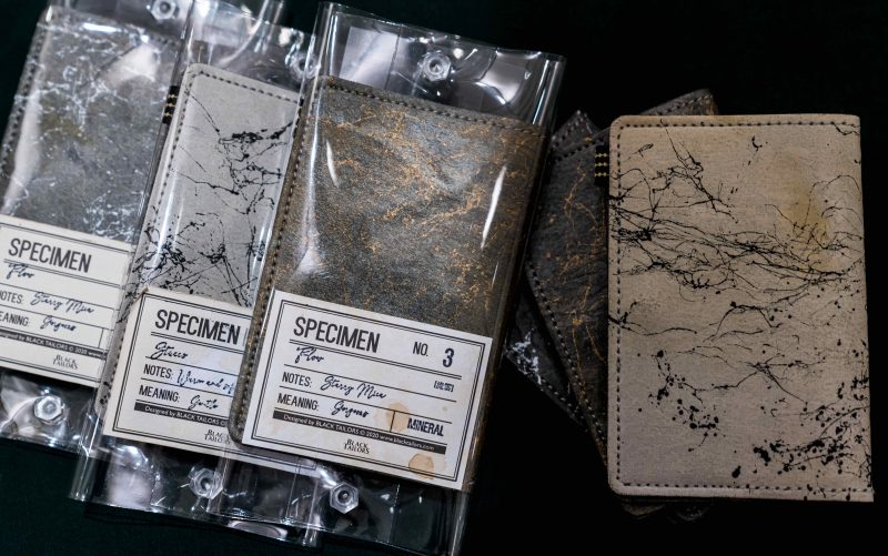 工作使然,我常需要觸摸水泥石膏、樹酯石膏以及矽膠等素材,很習慣透過雙手去感受物件狀態,像是確認石膏的濃稠度等等。硬材質一直是我很喜歡的觸感,透過設計師天彧與鄭洪我認識到BLACK TAILORS,一眼便被他們新推出的「大理石紋礦物卡夾」與「BETWEEN 之間-礦物盛綻花器」兩系列作品的表面石紋、鐵鏽感與經過光線照射產生不同光澤的呈現吸引!試想,如若只是平面輸出在皮件上,就顯得平淡無趣,無法透過起伏帶來視覺與觸覺的情緒感受。