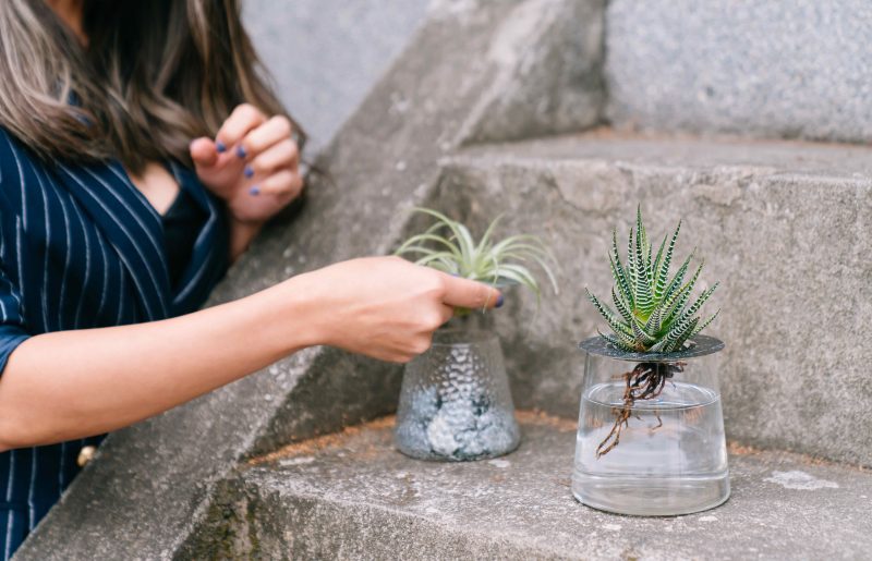 說到家中的植栽,除了大株的富貴榕,我發現BLACK TAILORS新推出的「BETWEEN 之間-礦物盛綻花器」讓小巧水耕植物在玻璃杯間伸展的設計,也非常適合成排地於窗簷延展而開-透過花器的支撐能從清透的玻璃器皿欣賞到植物根部,完整呈現植物往上延展與向下吸收養分的生長姿態,療癒感滿滿。