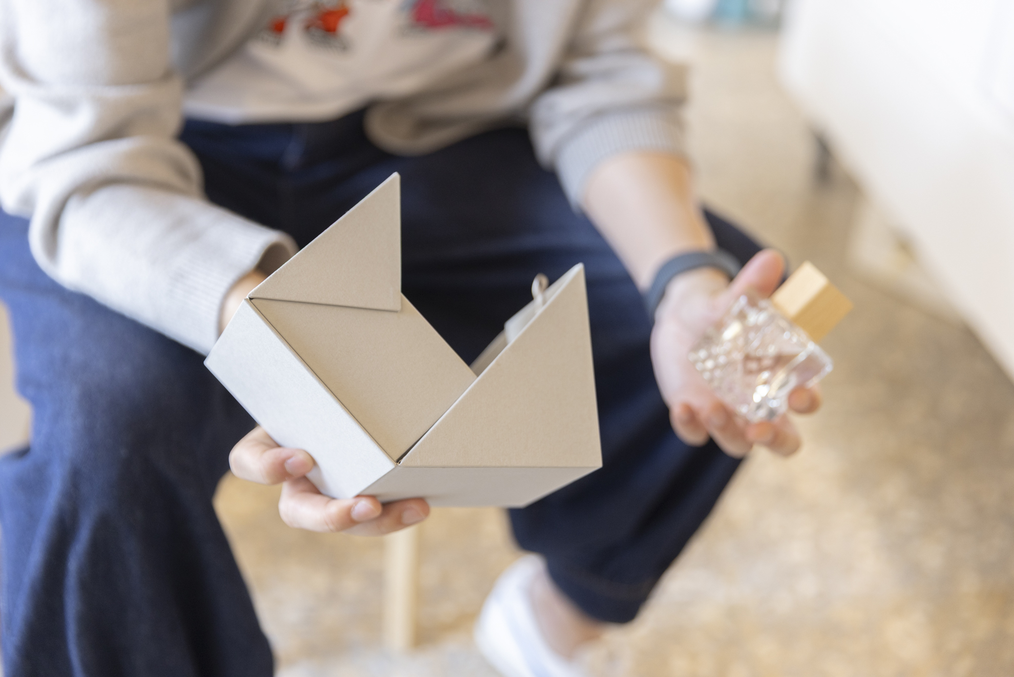 大春煉皂的包裝設計一直都有著他們獨特的巧思,像這次奇境香水系列的設計,不論香水的基調,還是玻璃瓶本身是與春池玻璃合作,除了手工製作也是使用再生玻璃,連外盒包裝上三角形『山』的意象,都是在聚焦土地友善循環再生這件事,並凸顯台灣山脈的形象,所有都回歸給予我們ㄧ切的大地本身。
