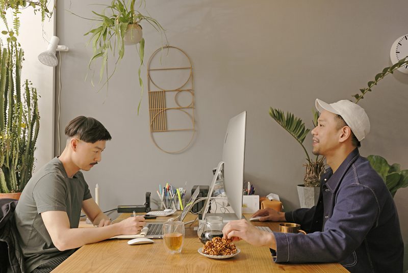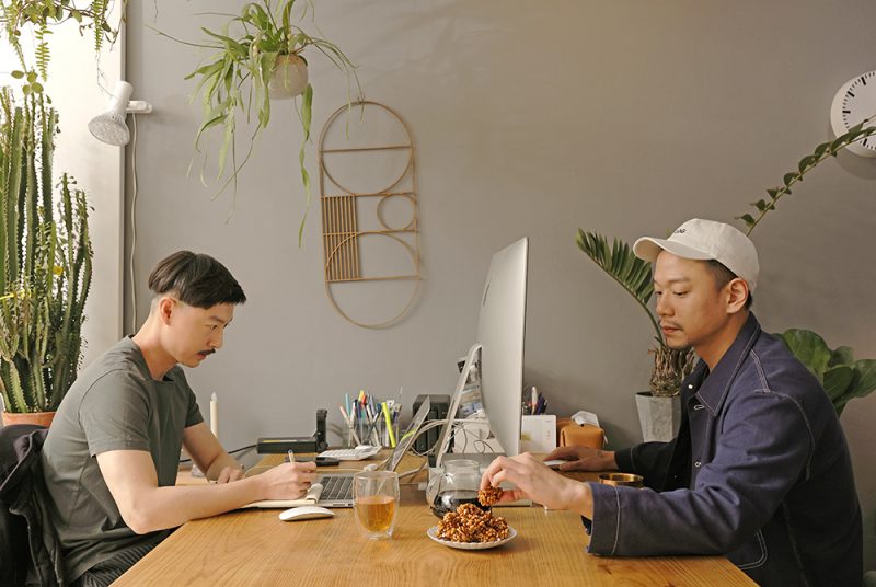 溫度物所的Isaac和Wayne以服裝設計為美學基礎,不論是平面設計、植物裝置藝術的作品,都能創造獨樹一格的美學概念,因2018年松菸原創基地節結緣,溫度物所的Isaac和Wayne透過土生土長的創辦人顧瑋引路,實地走訪產地和醬油釀造工廠,從那次起,食物開啟了他們另一個創作靈感。