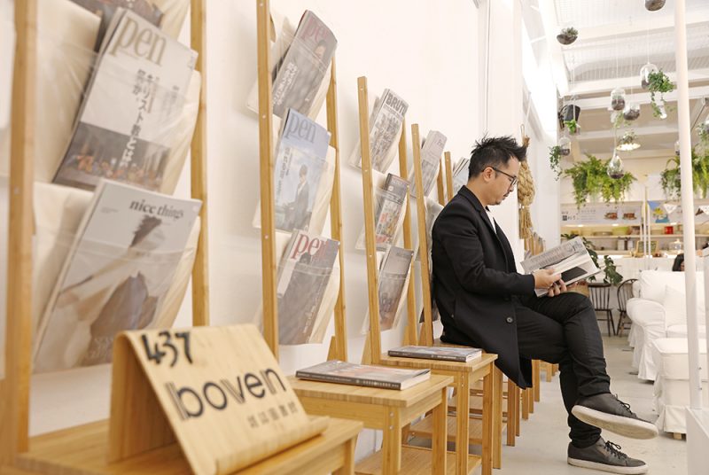 在未來市以437為標題的Boven雜誌圖書館,就是她最早發源地的門牌號碼;現場陳列的雜誌很多元,包括設計、藝術、時尚、生活、攝影等,尤以最熱門的MONOCLE為多數。Boven主張紙本閱讀具有數位媒體所無可取代的溫度和時代感,舉凡翻閱紙本的動作、紙張的味道與厚度、文字與圖像之間的輝映等,這種存在感與直覺式體驗,非電子媒介所能觸及。來一趟未來市的Boven,點一份餐飲、挑幾本雜誌閱讀,離開的時候,別忘了買一本給自己珍藏美麗。